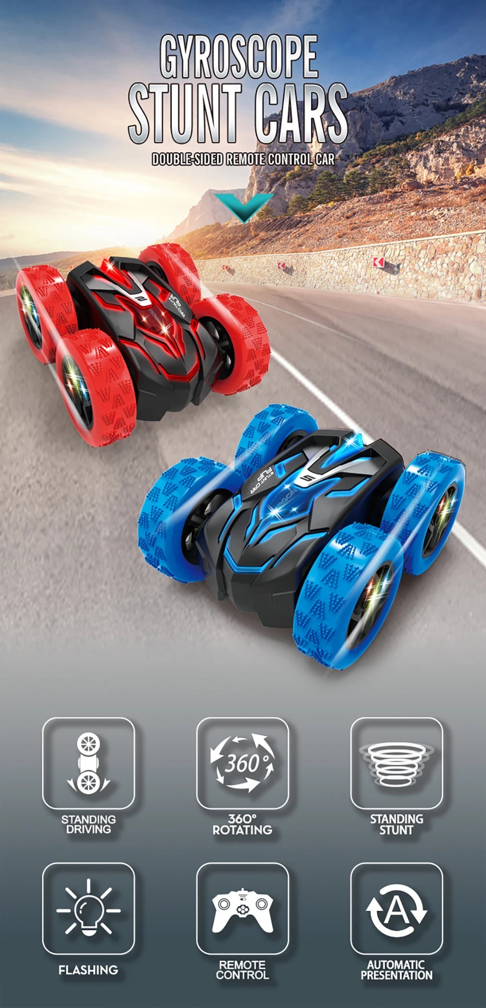 🔥 Com recursos emocionantes como movimento para frente/para trás, condução lateral dupla, virar à esquerda/direita e rotação de 360 graus, este carro de acrobacias é garantido para impressionar com suas manobras incríveis!