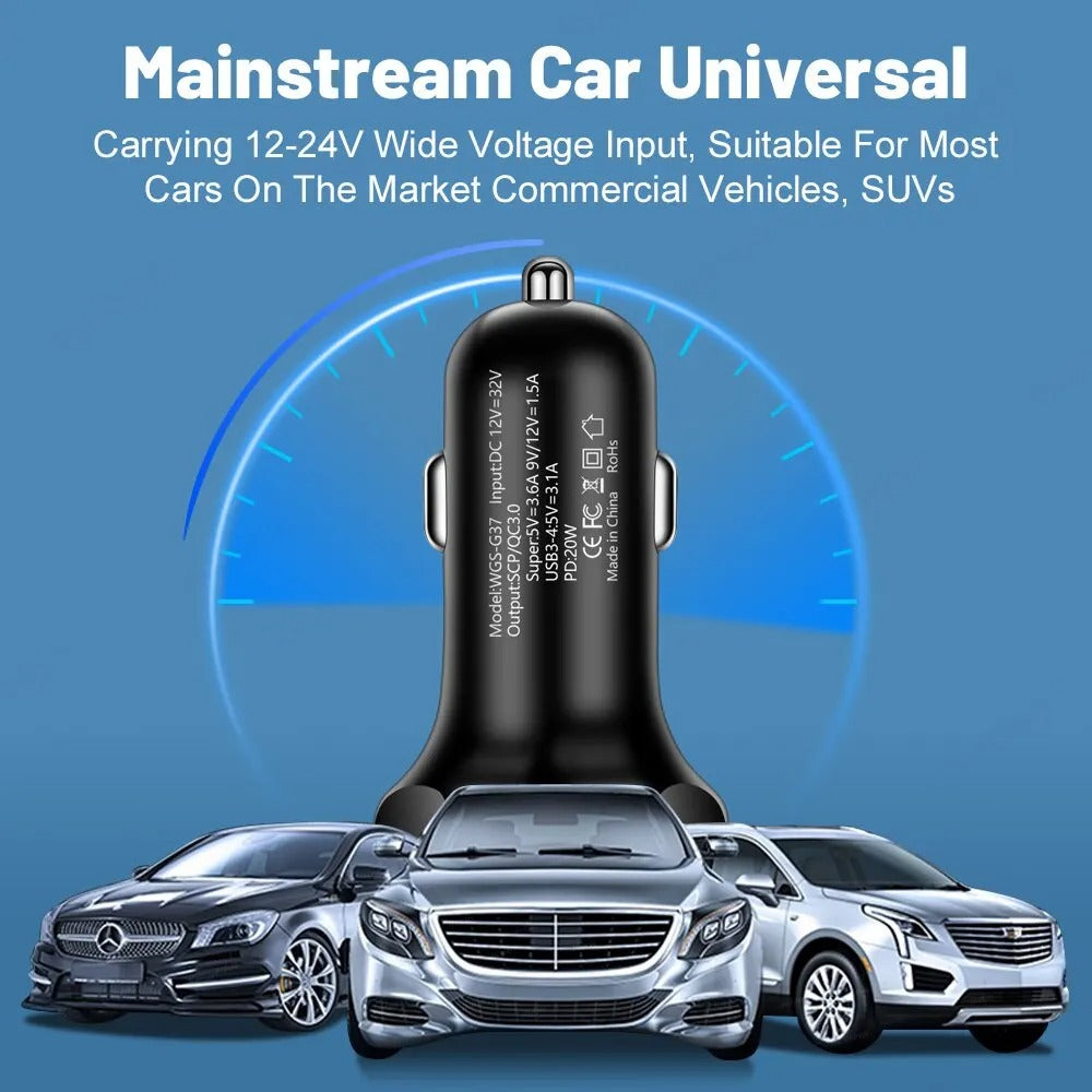 🚗 Carregue seus dispositivos com rapidez e eficiência enquanto viaja com este carregador de carro de alta potência e múltiplas portas USB! 📱💨