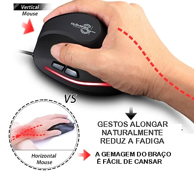 🖱️ Design Ergonômico: O design vertical ergonômico reduz a tensão no pulso e na mão, proporcionando conforto durante longas sessões de jogo.